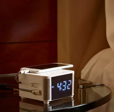 Kube Systems Clock is a premium universal charging system with built in cables for charging all your mobile devices. The PowerKube also provides streaming audio playback and recharges virtually all types of Smart phones and tablets without the need for additional cables or accessories